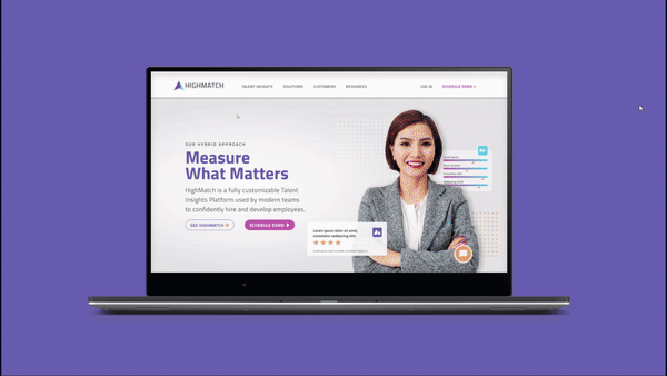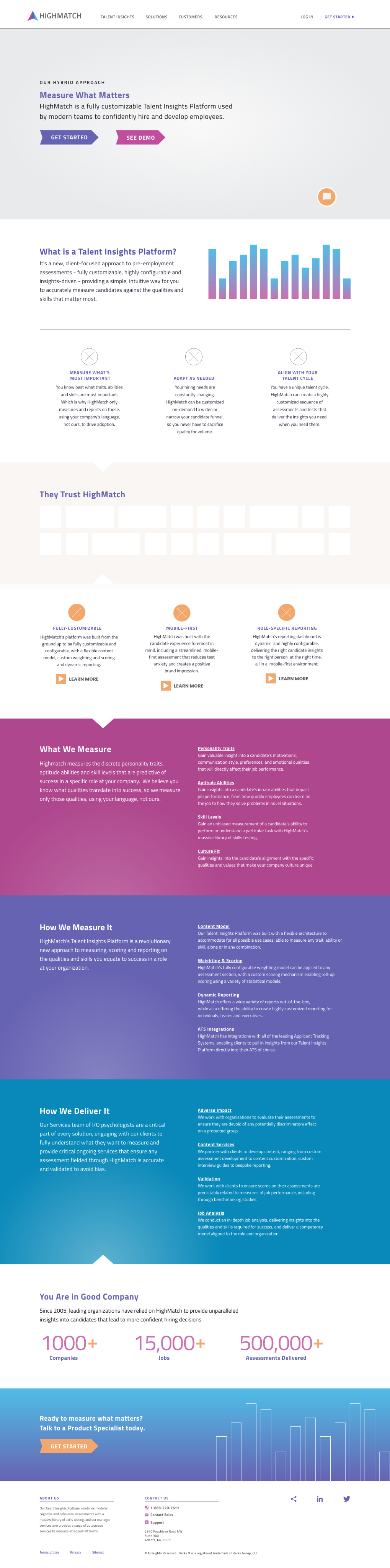 We pushed into the color theory after narrowing down our direction based on the theme directions. Working with Highmatch’s color palette, we explored button designs, font colors, and color-blocking layouts while working within ADA-compliance guidelines.